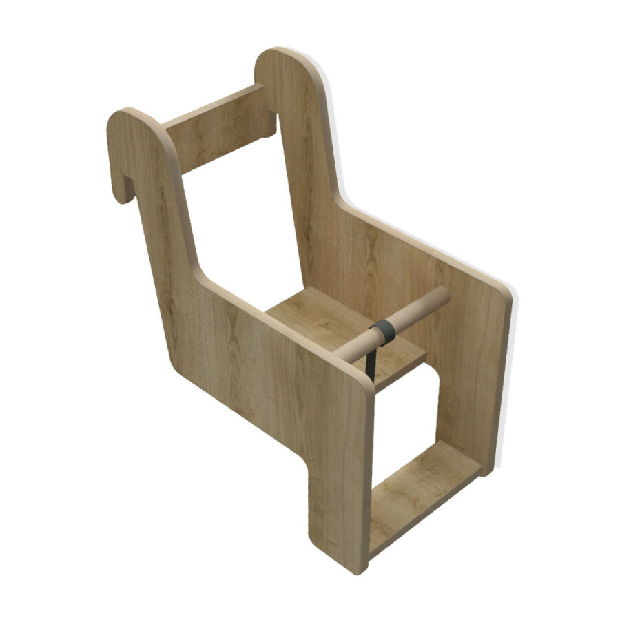 Het Babyzitje model 3 wordt naar keuze vervaardigd uit: 16 mm gemelamineerd MDF in de standaard kleurkeuze: eiken.