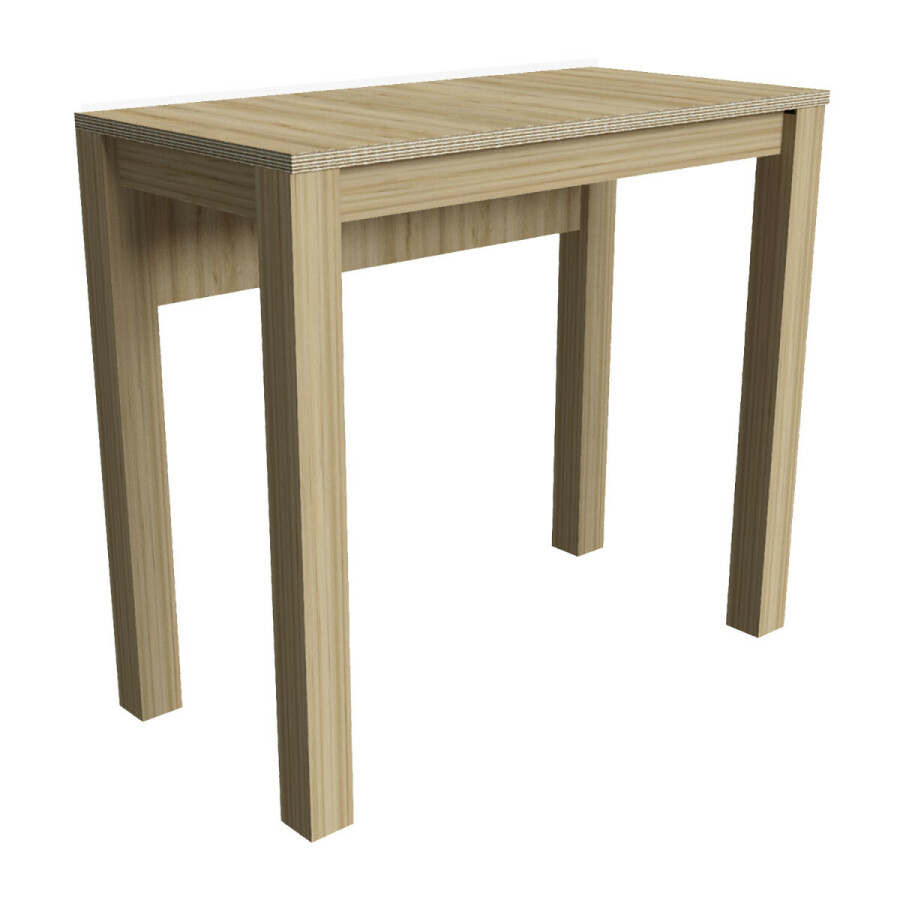 De Bartafel is vervaardigd van een eiken onderstel met een 22 mm multiplex blad afgewerkt met HPL in de uitvoering: eiken. Het geheel is blank gelakt.