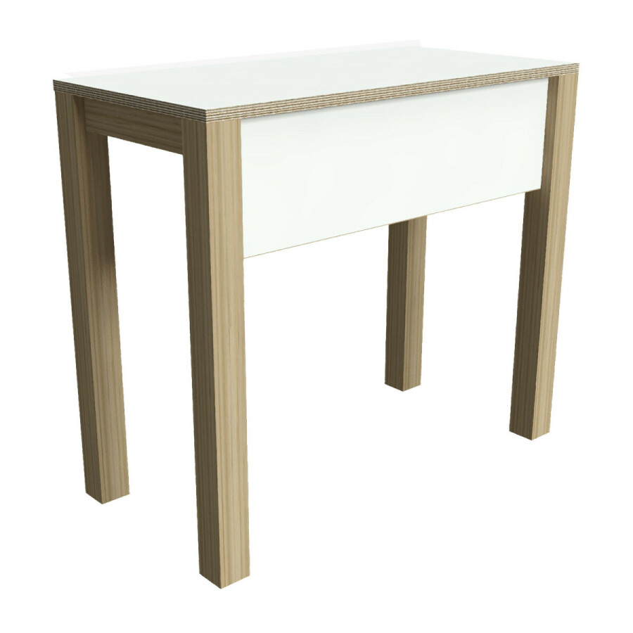 De Bartafel is vervaardigd van een eiken onderstel met een 22 mm multiplex blad afgewerkt met HPL in de uitvoering: wit. Het geheel is blank gelakt.