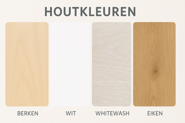 We hebben spannend nieuws! Binnenkort voegen we een prachtige nieuwe kleur toe aan onze standaardcollectie: Eiken. Deze warme, natuurlijke houttint komt naast onze bestaande kleuren Berken, Wit en White-Wash.