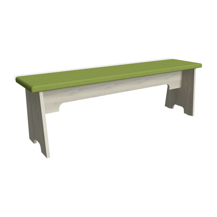 De BSO Bank wordt naar keuze vervaardigd uit: 22 mm dik gemelamineerd MDF. Uitgevoerd in de standaard kleurkeuze: white wash. De kopse kanten zijn gedeeltelijk afgeband met de gelijke kleur. De andere delen zijn blank gelakt.