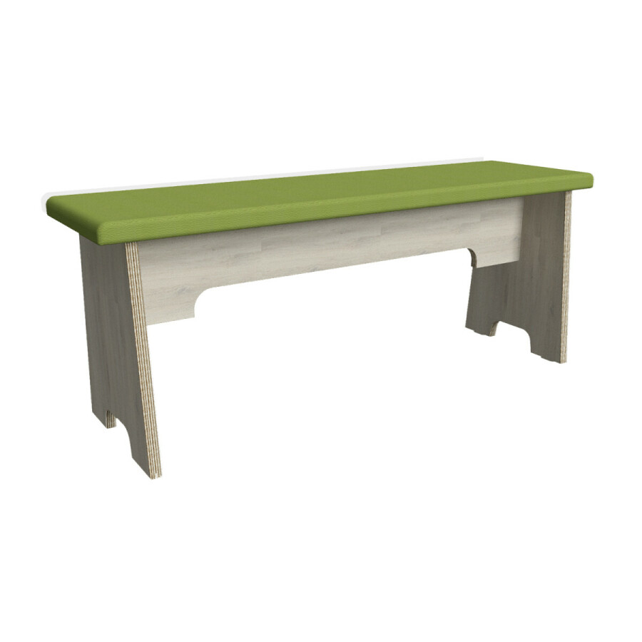 De BSO Bank wordt naar keuze vervaardigd uit: 22 mm dik berken multiplex. Uitgevoerd in de standaard kleurkeuze: white wash. De kopse kanten zijn gedeeltelijk afgeband met de gelijke kleur. De andere delen zijn blank gelakt.