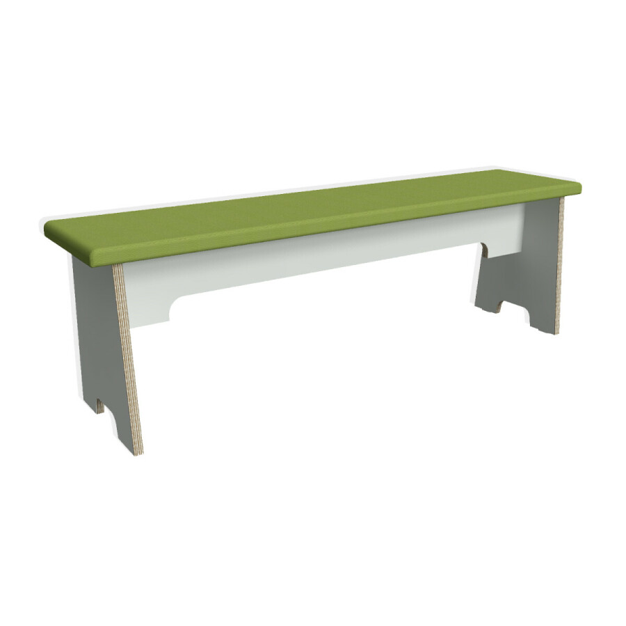 De BSO Bank wordt naar keuze vervaardigd uit: 22 mm dik berken multiplex. Uitgevoerd in de standaard kleurkeuze: wit. De kopse kanten zijn gedeeltelijk afgeband met de gelijke kleur. De andere delen zijn blank gelakt.