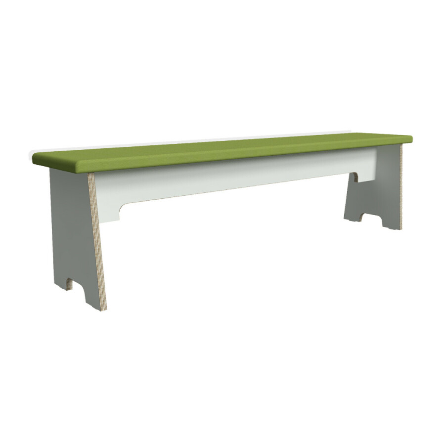 De BSO Bank wordt naar keuze vervaardigd uit: 22 mm dik berken multiplex. Uitgevoerd in de standaard kleurkeuze: wit. De kopse kanten zijn gedeeltelijk afgeband met de gelijke kleur. De andere delen zijn blank gelakt.