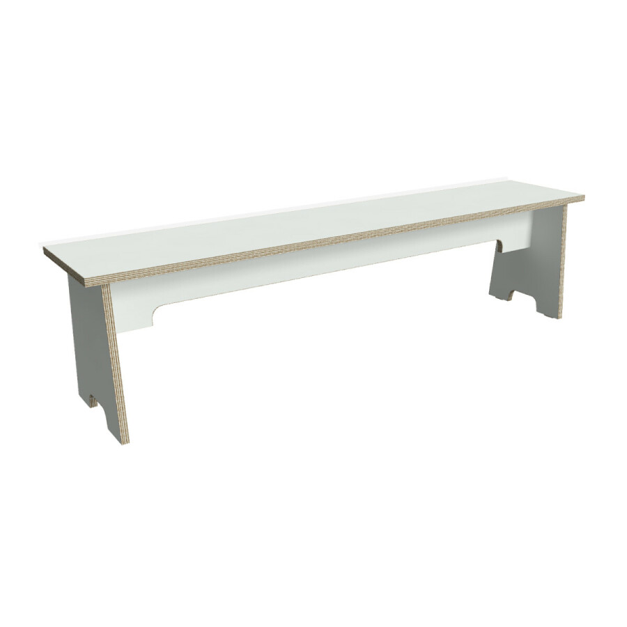 De BSO Bank wordt naar keuze vervaardigd uit: 22 mm dik berken multiplex. Uitgevoerd in de standaard kleurkeuze: wit. De kopse kanten zijn gedeeltelijk afgeband met de gelijke kleur. De andere delen zijn blank gelakt.