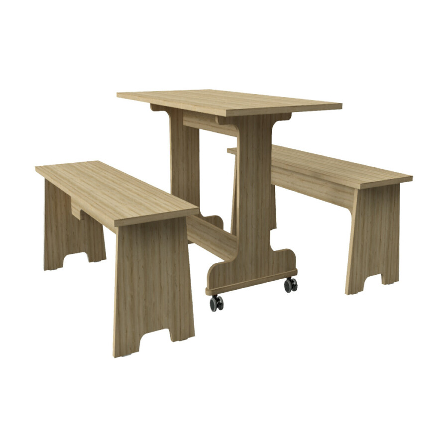 De BSO Set wordt naar keuze vervaardigd uit: 22 mm dik gemelamineerd MDF. Uitgevoerd in de standaard kleurkeuze: eiken. De kopse kanten zijn gedeeltelijk afgeband met de gelijke kleur. De andere delen zijn blank gelakt.