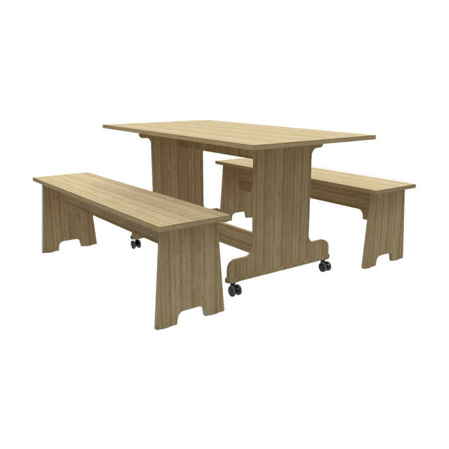 De BSO Set wordt naar keuze vervaardigd uit: 22 mm dik gemelamineerd MDF. Uitgevoerd in de standaard kleurkeuze: eiken. De kopse kanten zijn gedeeltelijk afgeband met de gelijke kleur. De andere delen zijn blank gelakt.