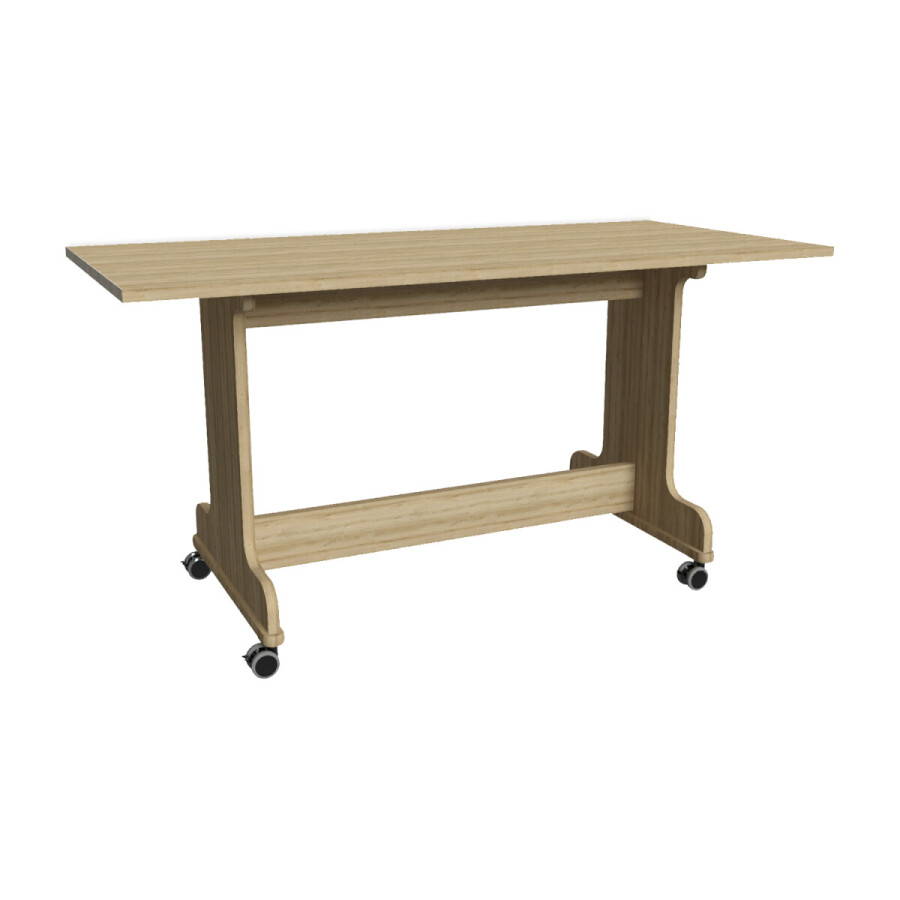 · De tafelpoten zijn uitgevoerd met 4 geremde wielen met een rubber loopvlak.