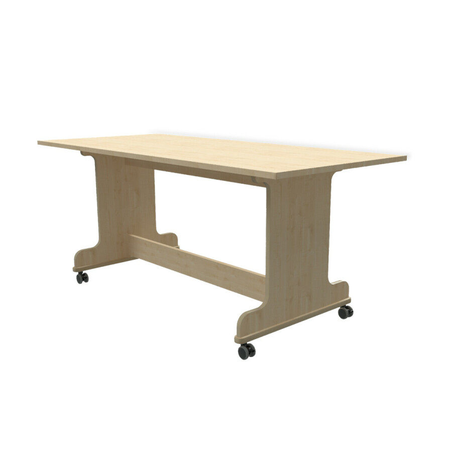 · De tafelpoten zijn uitgevoerd met 4 geremde wielen met een rubber loopvlak.