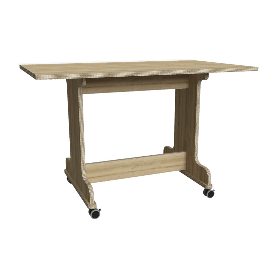 De BSO tafel is vervaardigd uit 22 mm multiplex met HPL, in de uitvoering: eiken.