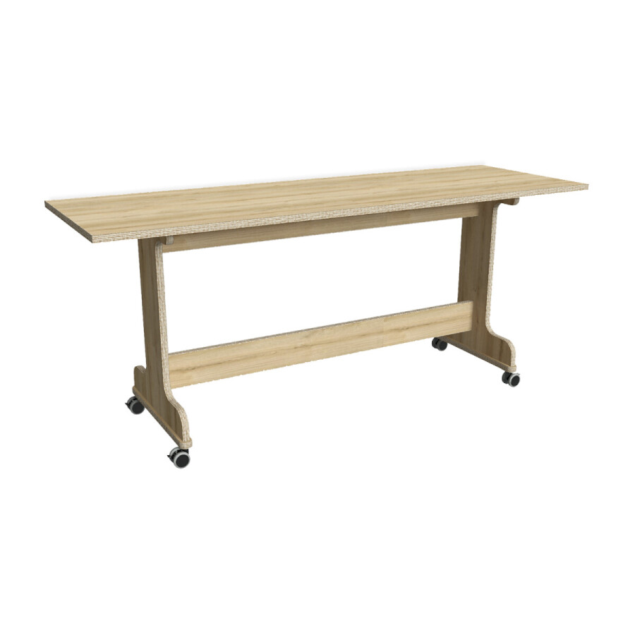 De BSO tafel is vervaardigd uit 22 mm multiplex met HPL, in de uitvoering: eiken.