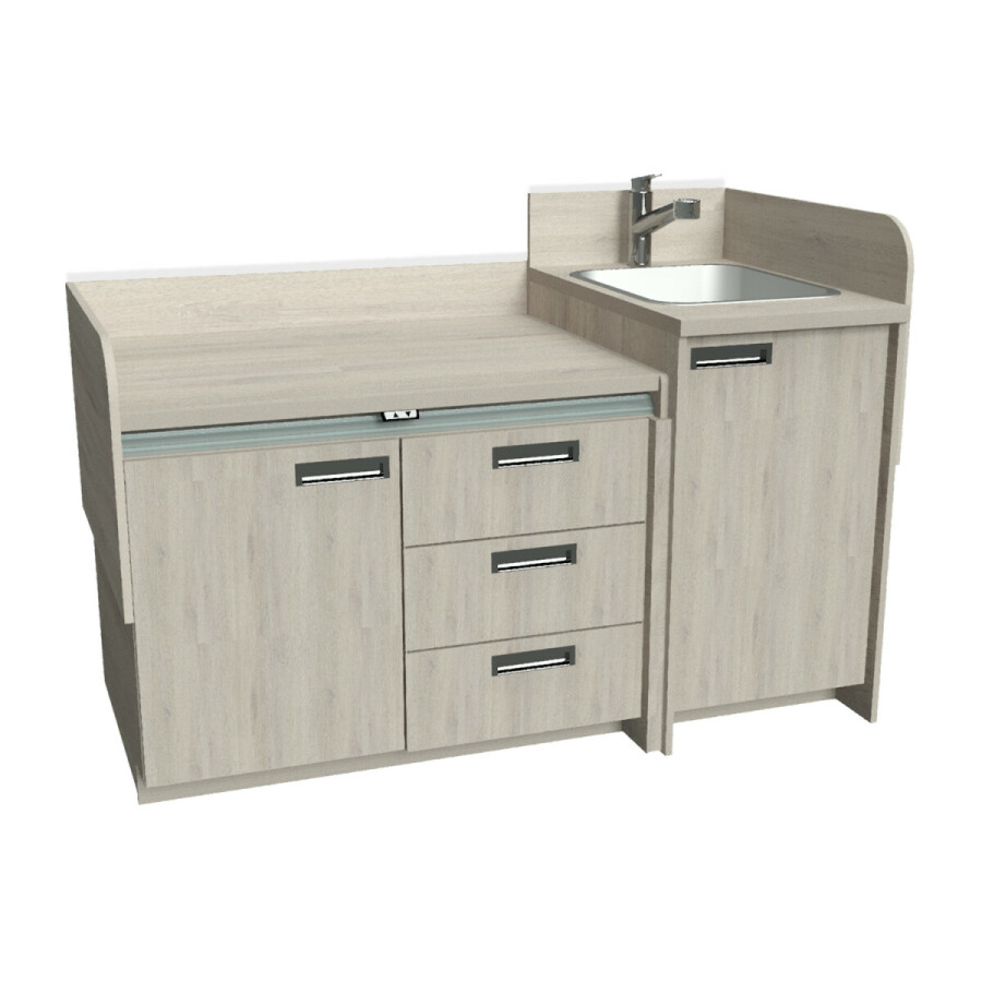 Het werkblad is 79 cm diep en 158,3 cm breed. De voorzijde van het werkblad is voorzien van een kantband, die morsen en spatten voorkomen.
