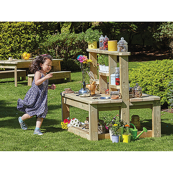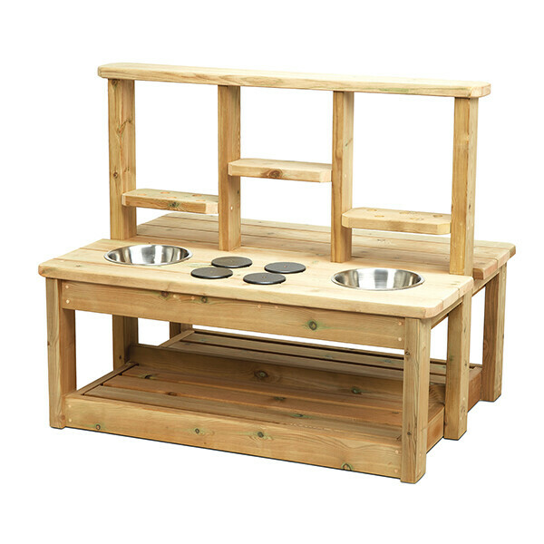 Stimuleer fantasierijk buitenspel en samenwerking met deze veelzijdige eiland modderkeuken, speciaal ontworpen voor jonge ontdekkers.