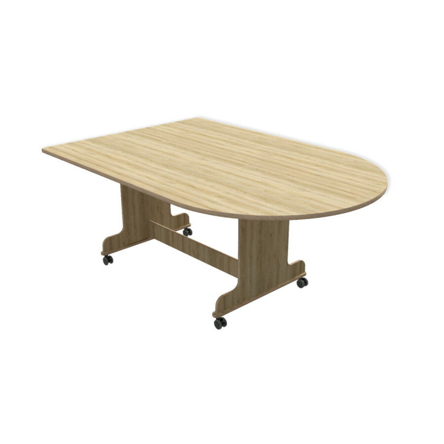 · De Ergo Ovaaltafel is voorzien van 4 geremde wielen met rubber loopvlak.