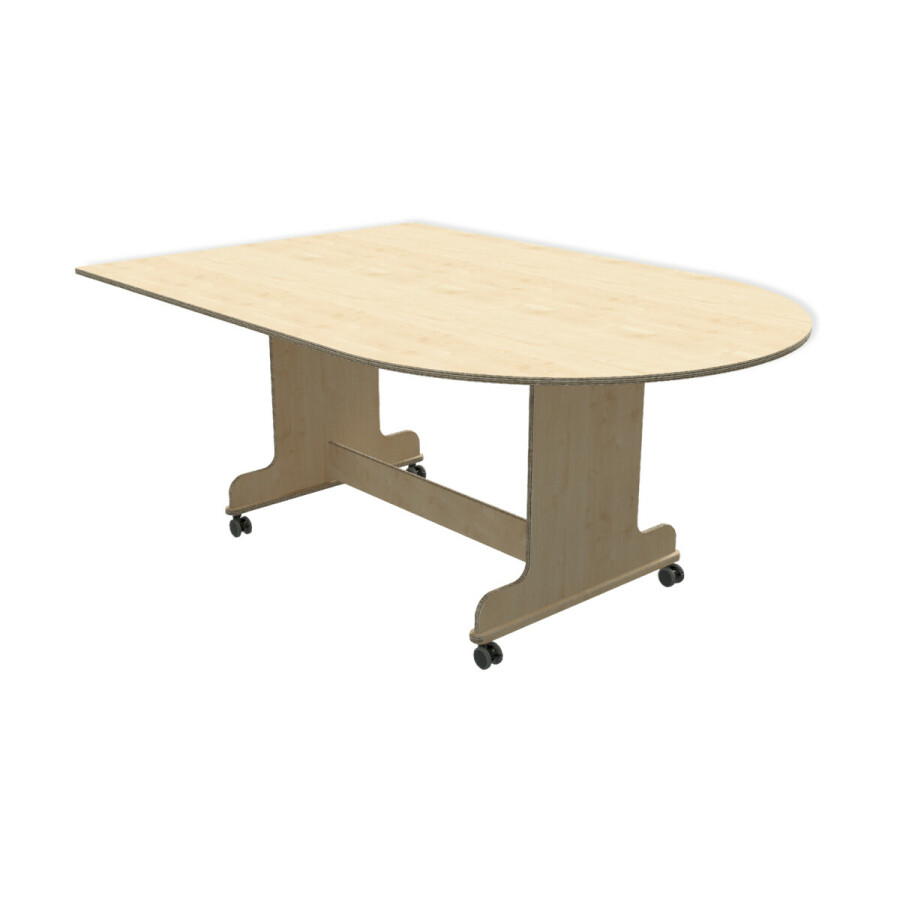 · De Ergo Ovaaltafel is voorzien van 4 geremde wielen met rubber loopvlak.