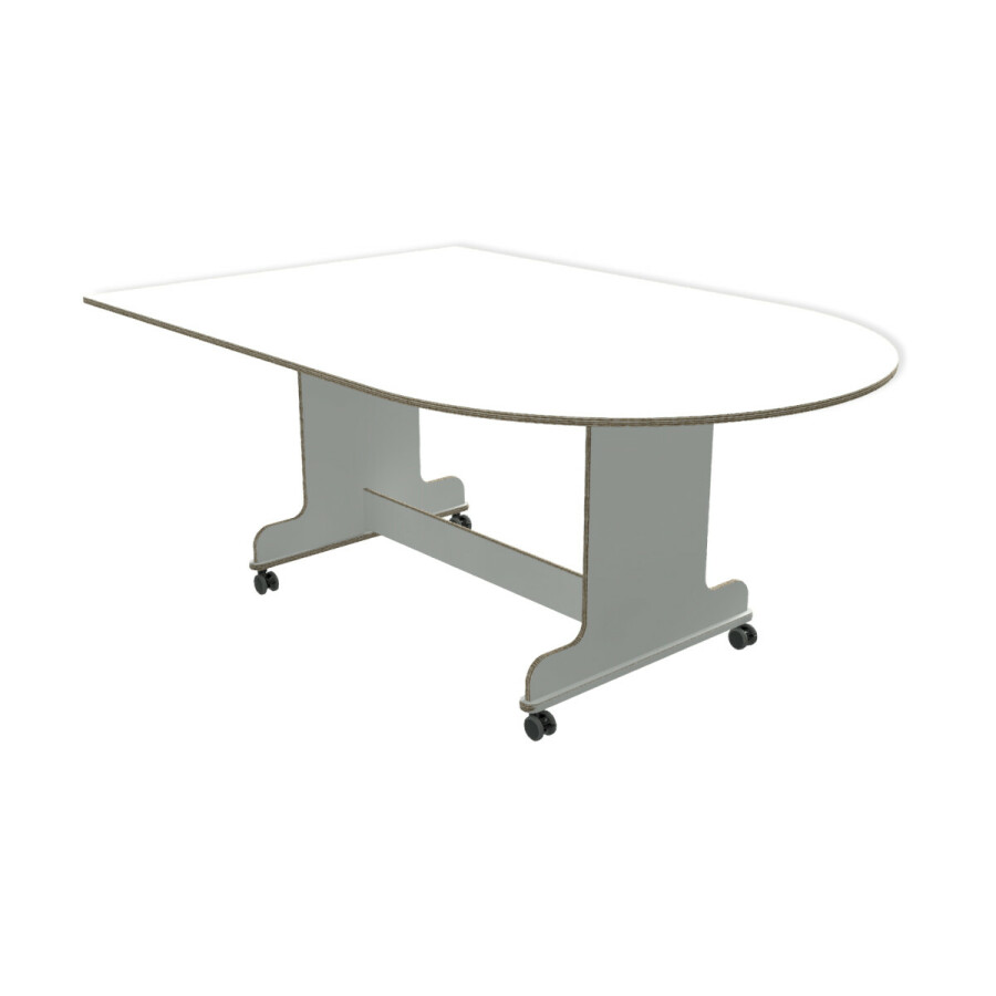 · De Ergo Ovaaltafel is voorzien van 4 geremde wielen met rubber loopvlak.