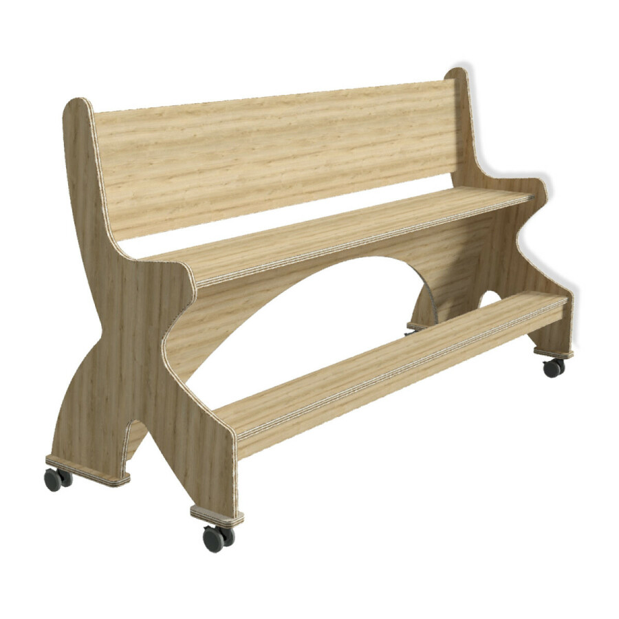 De Ergobank Model 4 wordt naar keuze vervaardigd uit 16 mm berken multiplex. In de standaard kleurkeuze eiken.