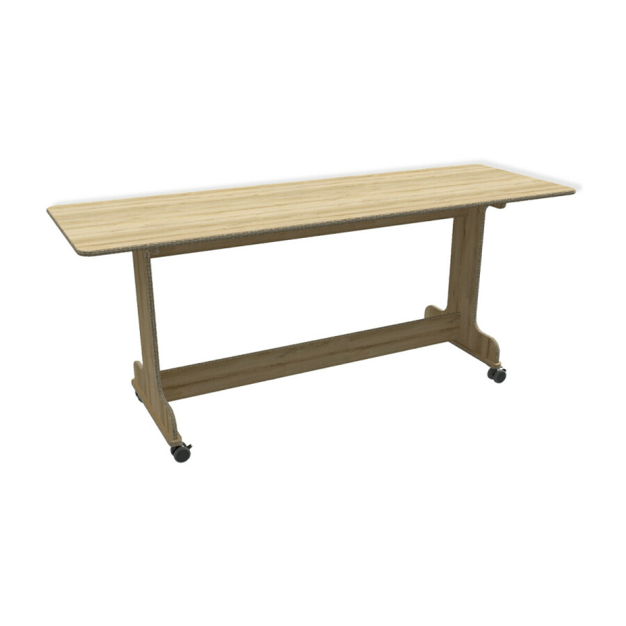 De Ergotafel is vervaardigd van berken multiplex dikte 16 mm, in de standaard uitvoering: eiken. De kopse kanten zijn blank gelakt.
