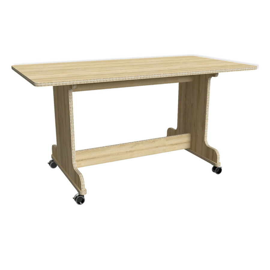 De Ergotafel is vervaardigd van berken multiplex dikte 22 mm, in de standaard uitvoering: eiken. De kopse kanten zijn blank gelakt.
