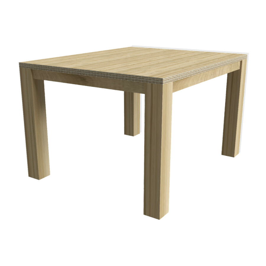 De Groepstafel is vervaardigd van een massief eiken onderstel met een 32 mm dik multiplex blad afgewerkt met HPL. Standaard uitgevoerd in: eiken. De kopse kanten van het blad zijn blank gelakt, het onderstel is in de gekozen kleur gelakt.
