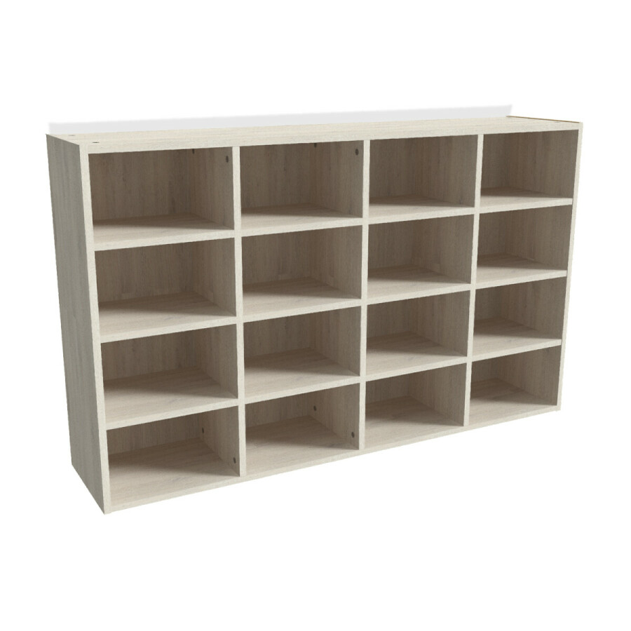 · De Hangende vakkenkast bestaat uit 16 vakken van afmeting lxbxh: 29,5 x 26 x 17,75 cm.