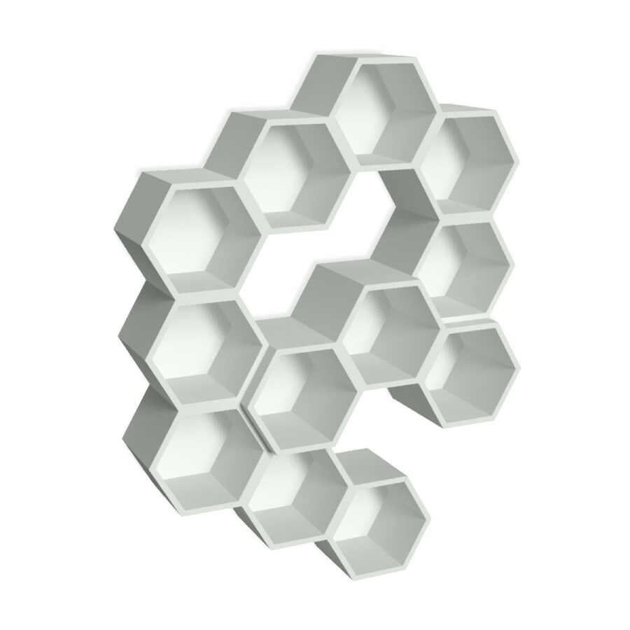 Een decoratieve hangkast, de Honingraat kast. Door de 6-hoekigekasten, welke aan een geschakeld zijn, wordt het een speelse kast. Door de hoogte verschillen wordt er een diepte gecreëerd, welke een leuk effect aan wordt gegeven aan de kast.