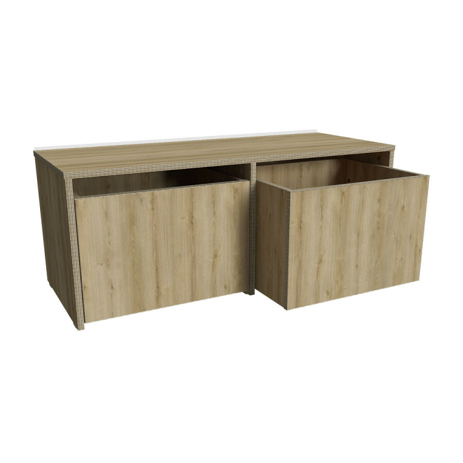 Kast Rolly wordt naar keuze vervaardigd uit: gemelamineerd MDF of in berken multiplex in de standaard kleurkeuze: eiken.