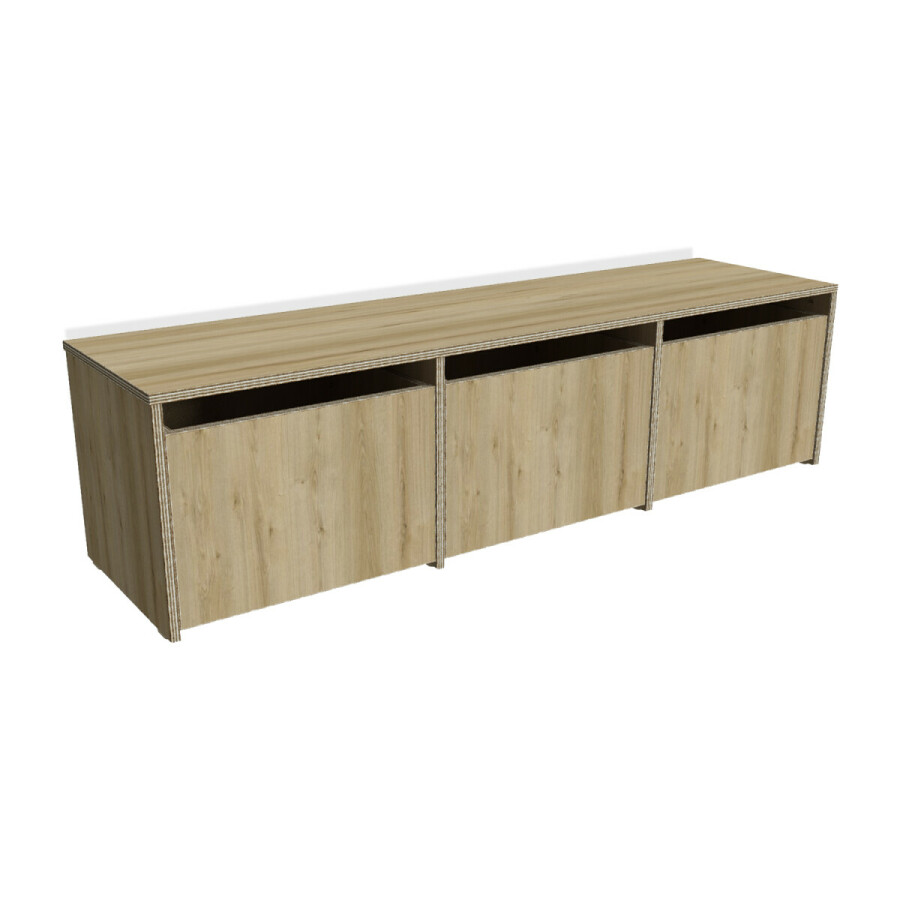 Kast Rolly is een multifunctionele lage kast met uitschuifbare bakken. Het is een lage ruimteverdeler of leuke lage kast voor tegen te wand om speelgoed in op te bergen. Kinderen kunnen de uitschuifbare bakken eenvoudig zelf uitschuiven en mee nemen naar hun speelplek. Het kan tevens gebruikt worden als bankje.