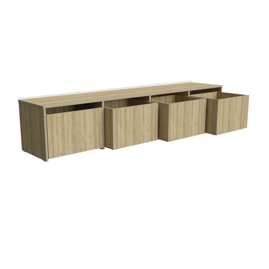 Kast Rolly is een multifunctionele lage kast met uitschuifbare bakken. Het is een lage ruimteverdeler of leuke lage kast voor tegen te wand om speelgoed in op te bergen. Kinderen kunnen de uitschuifbare bakken eenvoudig zelf uitschuiven en mee nemen naar hun speelplek. Het kan tevens gebruikt worden als bankje.