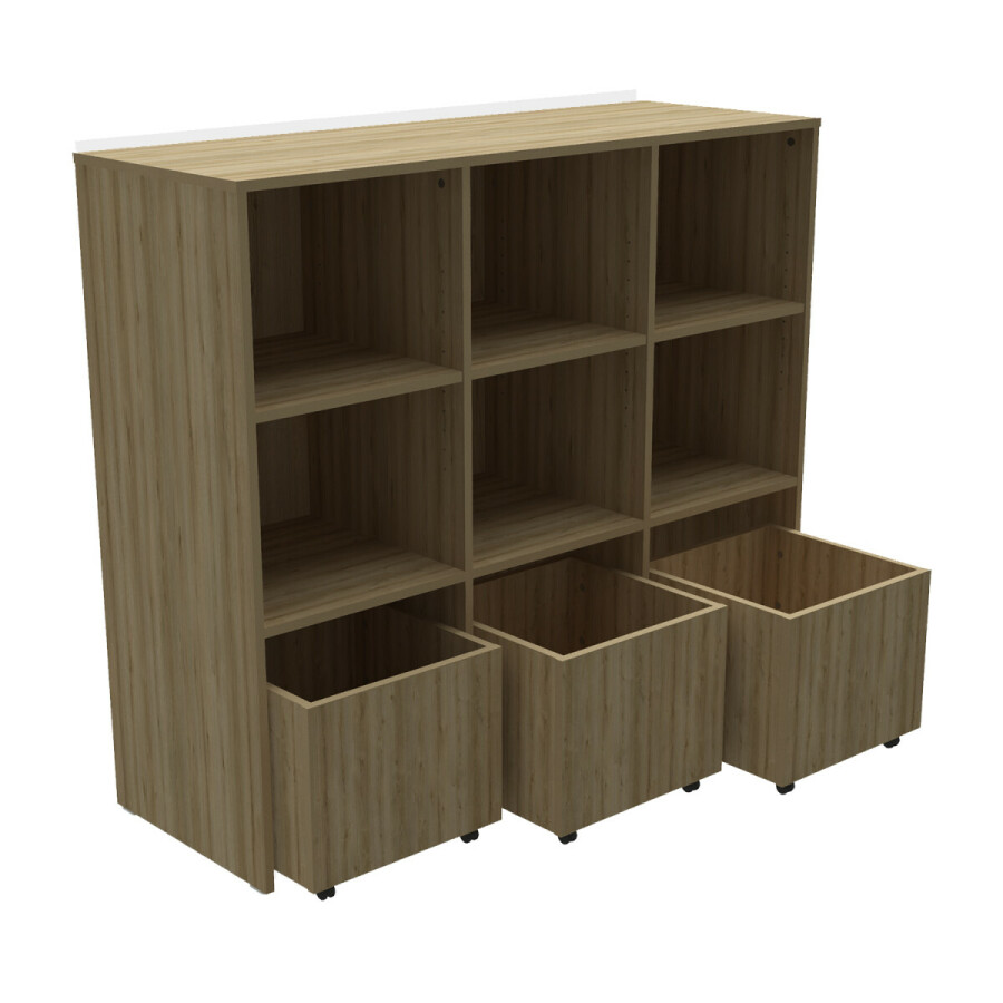 ⦁ Open kieskast opgedeeld in 3 opbergruimtes, aan 1 zijde toegankelijk.