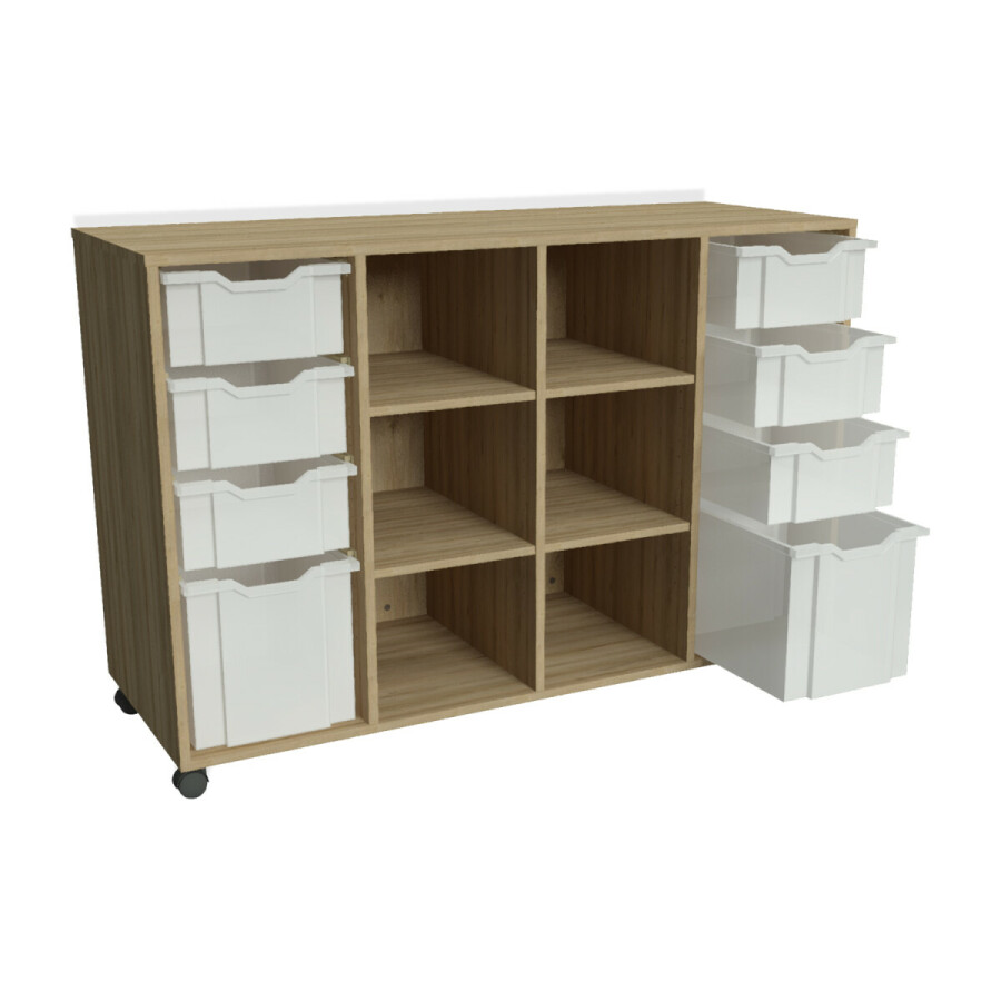 Ben je op zoek naar een praktische en mooie opbergoplossing? Onze kiestkast met 4 symboxen op wielen is de perfecte aanvulling voor jouw interieur!