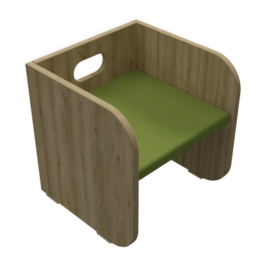 Met de Kubusstoel kunnen de kinderen op hun eigen hoogte zitten en spelen. De kubusstoel is multifunctioneel inzetbaar. Draai de kubusstoel op zijn kant om een krukje of tafeltje te maken. De Kubusstoel is geschikt voor intensief professioneel gebruik binnen een kinderdagverblijf, peuterzaal, Bso en het lager onderwijs.