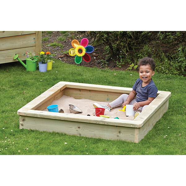 Stimuleer zintuiglijk spel en creativiteit met deze lage zandbak, speciaal ontworpen voor jonge kinderen. Dankzij de lage instap kunnen kleintjes gemakkelijk bij het zand, terwijl de handige rand rondom ideaal is om emmertjes, schepjes en ander speelmateriaal op te plaatsen.