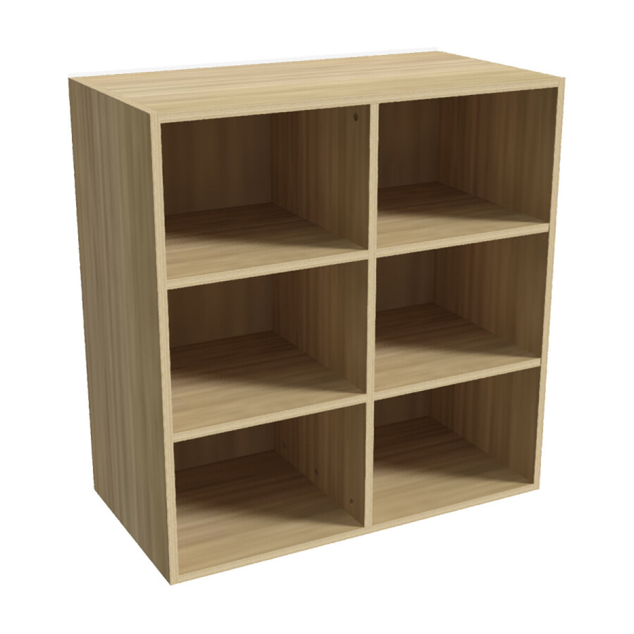 De module bovenkast met 6 vakken, is een van de module kasten welke met de module kasten serie gecombineerd kan worden. Zodat er een geheel eigen kasten wand samengesteld kan worden. Ook leent deze kast zich uitstekend voor alleen gebruik. De kast biedt extra opberg ruimte.