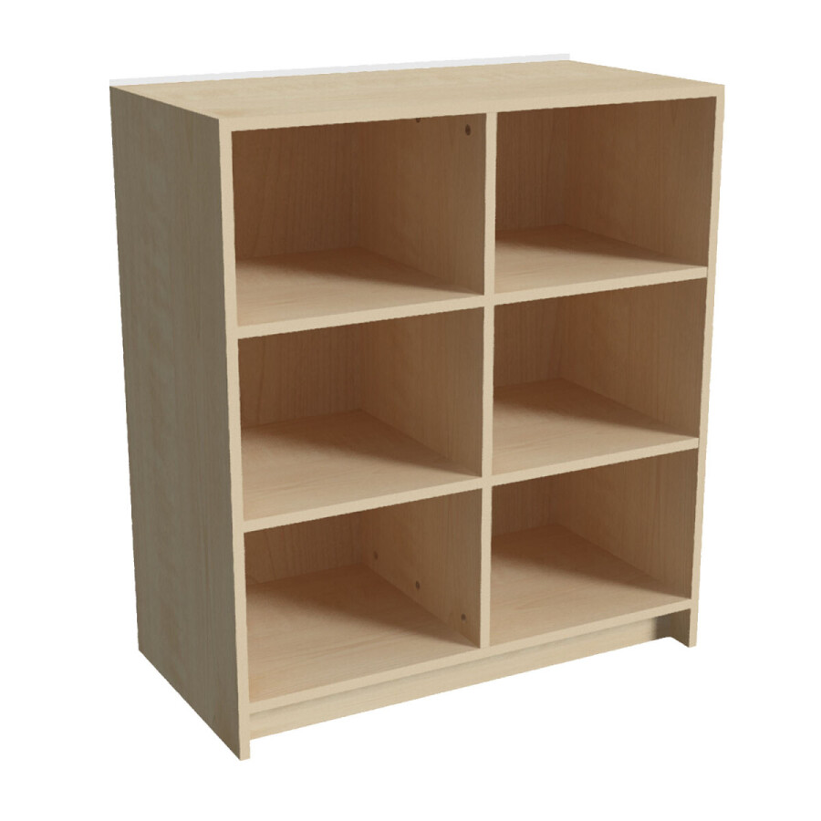 Module onderkast 6 vaks is vervaardig van gemelamineerd MDF afgewerkt in de kleur: berken, wit of white wash. De kast is rondom afgewerkt met een pvc kantband in dezelfde kleur.