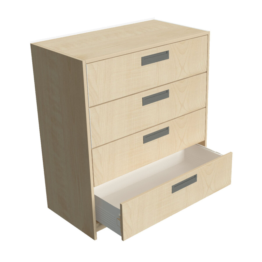 Module kast met lades is vervaardig van gemelamineerd MDF afgewerkt in de kleur: berken. De kast is rondom afgewerkt met een pvc kantband in dezelfde kleur.