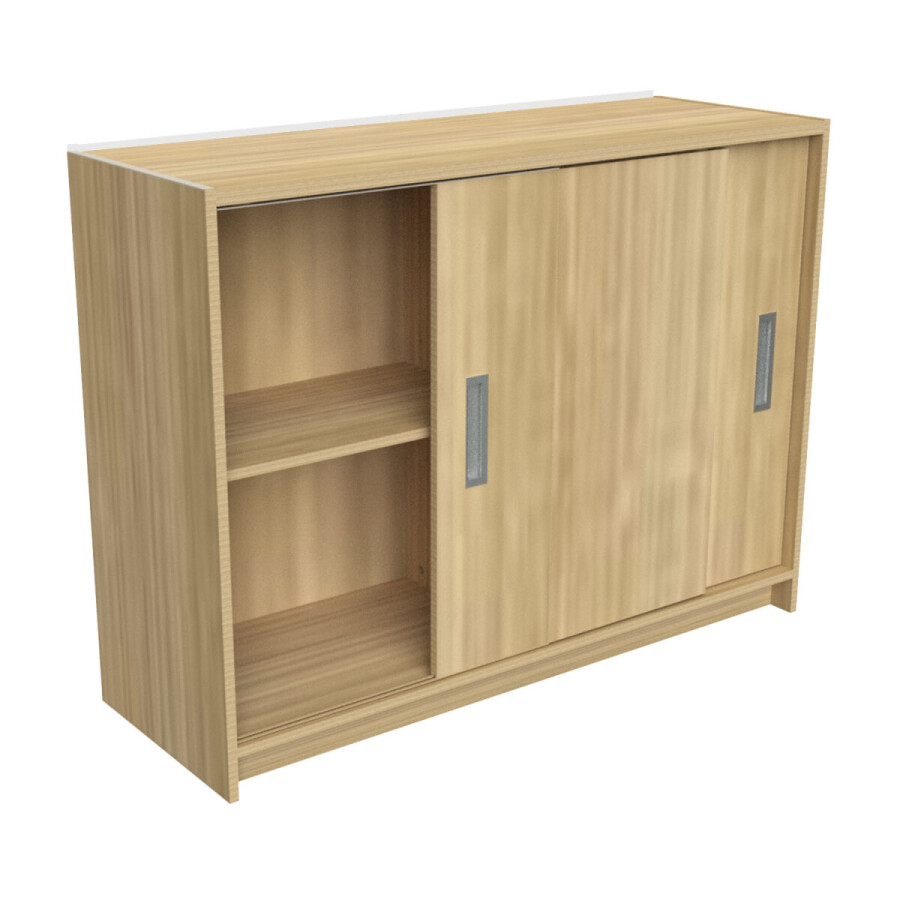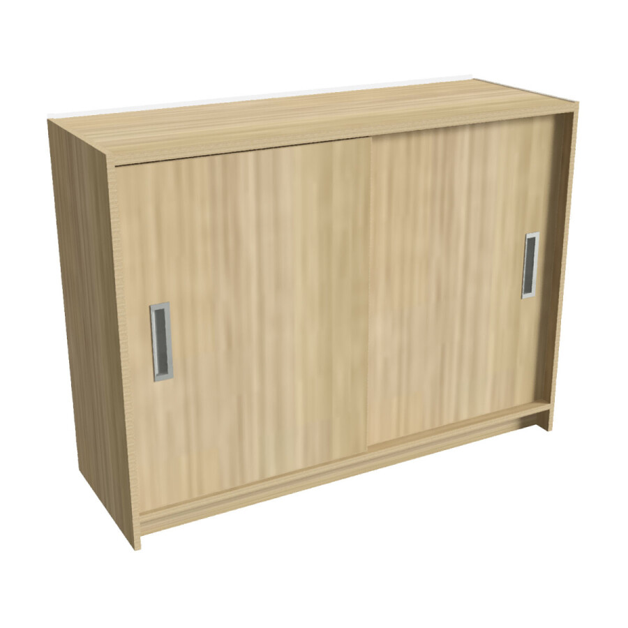 Module Schuifdeurkast is vervaardig van gemelamineerd MDF afgewerkt in de kleur: eiken. De kast is rondom afgewerkt met een pvc kantband in dezelfde kleur.