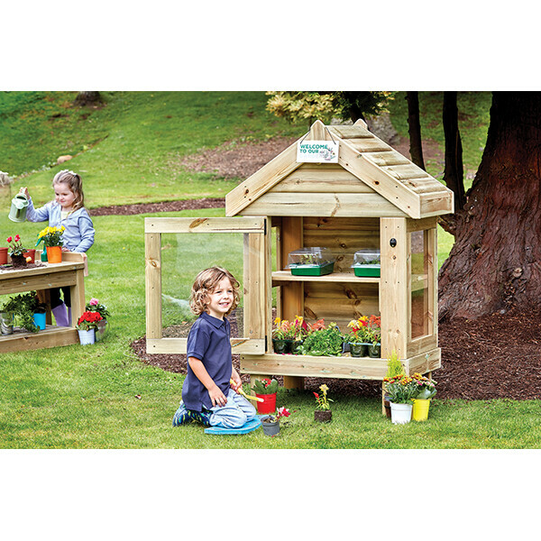 Deze Plantenwinkel nodigt kinderen uit om spelenderwijs kennis te maken met planten, groeien en verzorgen! Dankzij de speciaal ontworpen ramen wordt de kieming en groei van planten optimaal ondersteund, terwijl de transparante deuren en zijwanden kinderen een prachtig inkijkje geven in het hele groeiproces. De vrijstaande constructie heeft een kindvriendelijke hoogte, zodat jonge kinderen zelfstandig bij hun planten kunnen en zich echte kleine tuiniers wanen.