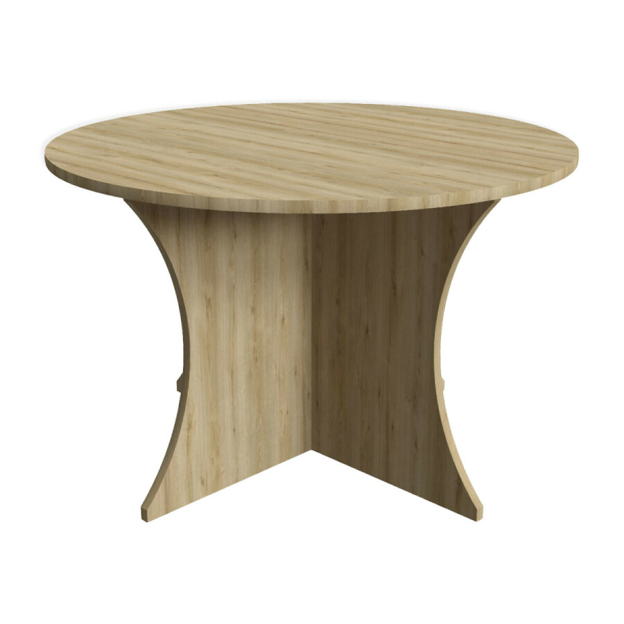Deze ronde lage tafel met X-poot biedt de perfecte combinatie van stijl en functionaliteit. De tafel heeft een hoogte van 52 cm en is vervaardigd uit MDF voorzien van melamine. De tafel is gemakkelijk te combineren met lage stoeltjes, waardoor hij ideaal is voor een gezellige zit-, speelhoek.