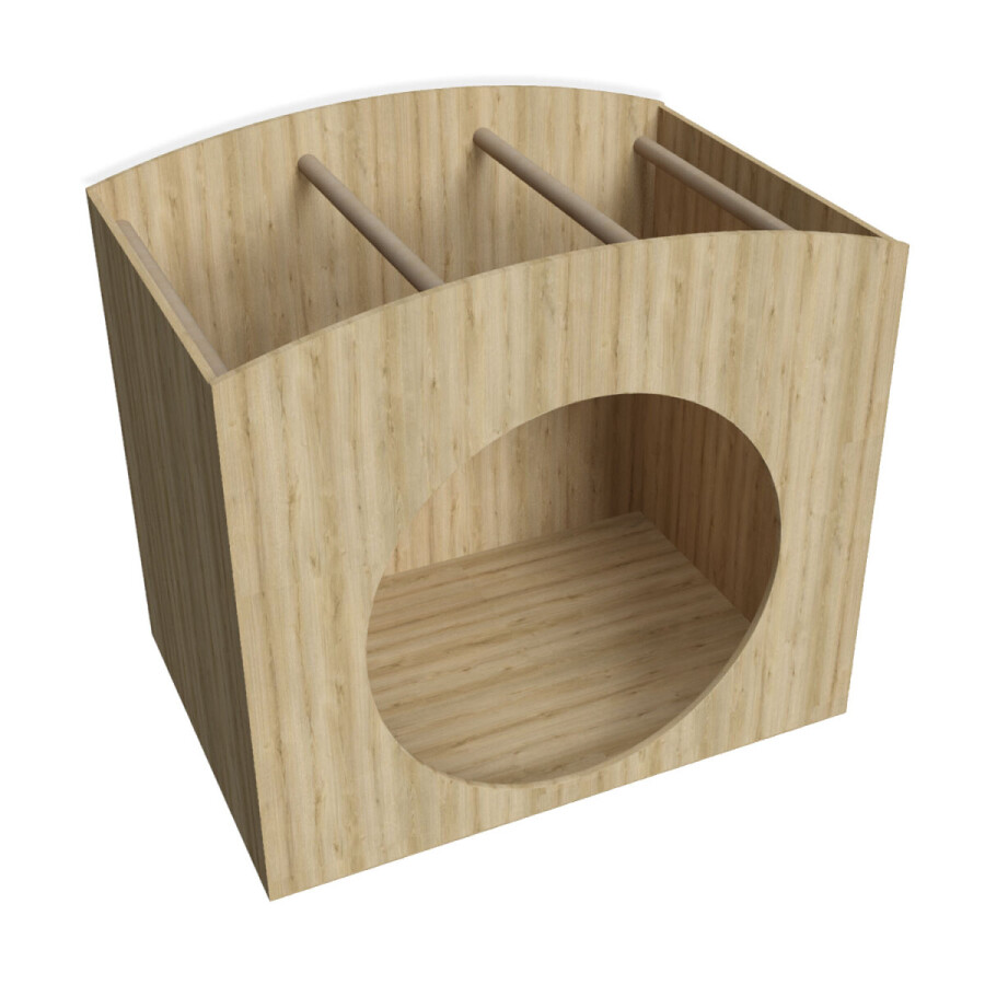 De Snoezelbox is vervaardig van MDF en berken multiplex in de standaard kleurkeuze: eiken.