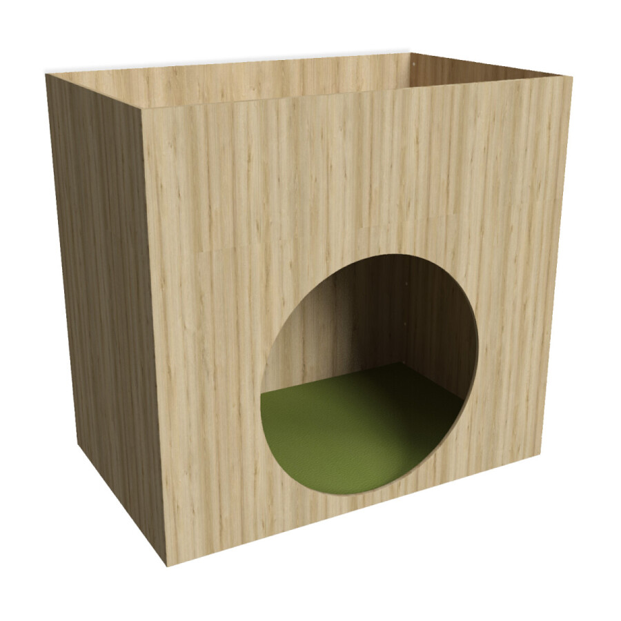 De Snoezelhut is vervaardig van berken multiplex in de standaard kleurkeuze: eiken.