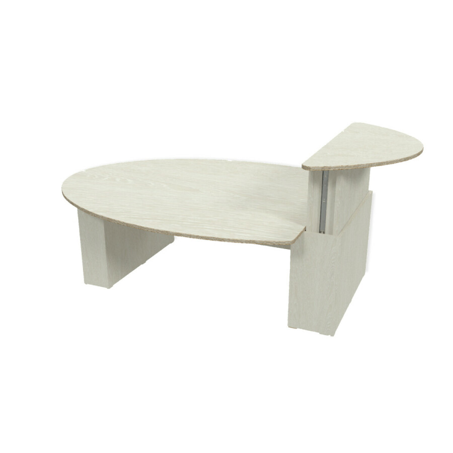 · De lage tafel is uitgevoerd met twee poten.