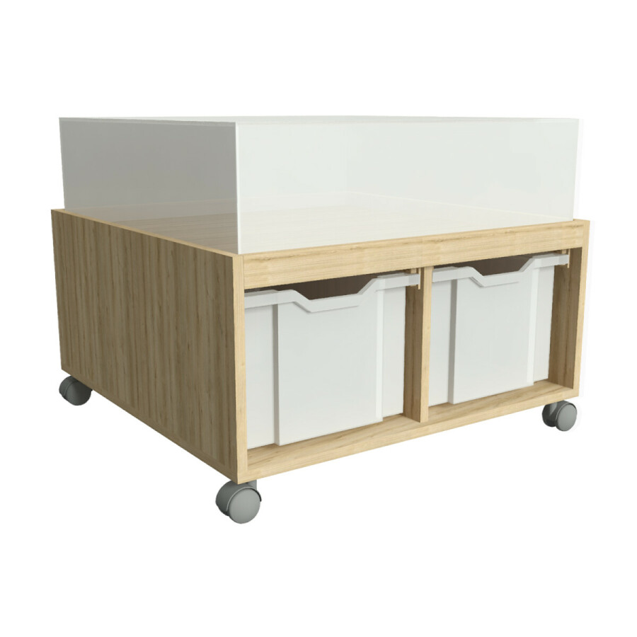 Met de Themakast kunnen seizoenen, beroepen, voorwerpen etc. worden gepresenteerd. Door de transparante stolp kunnen de kinderen zien met welk thema wordt behandeld. De themakast is een multifunctioneel element. Het biedt vele mogelijkheden om spullen te presenteren en op te bergen.