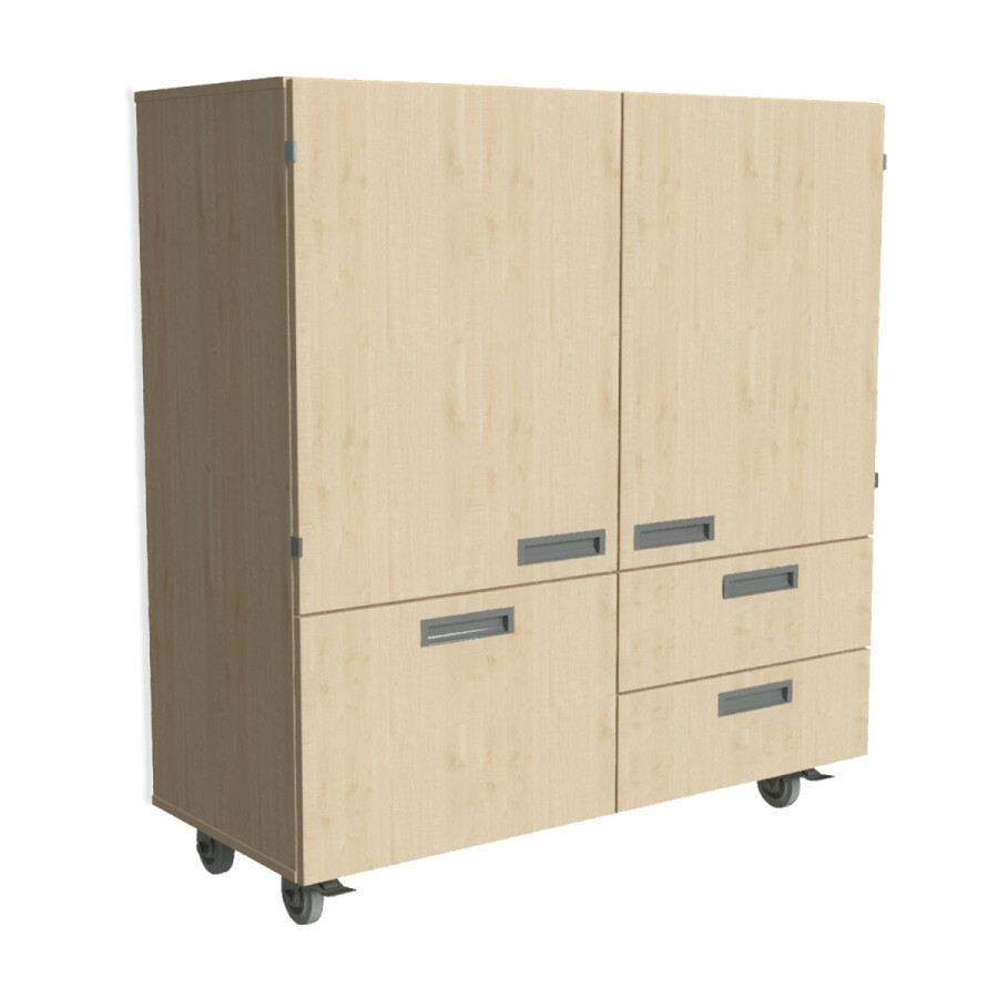 De TV kast is een verrijdbare kast waar een TV, Dvd-speler of ander computerspellen gemakkelijk in kunnen worden opgeborgen. De kast is voorzien van 2 afsluitbare deuren met legplank waaronder 1 deur met legplank en 2 lades zijn voorzien.