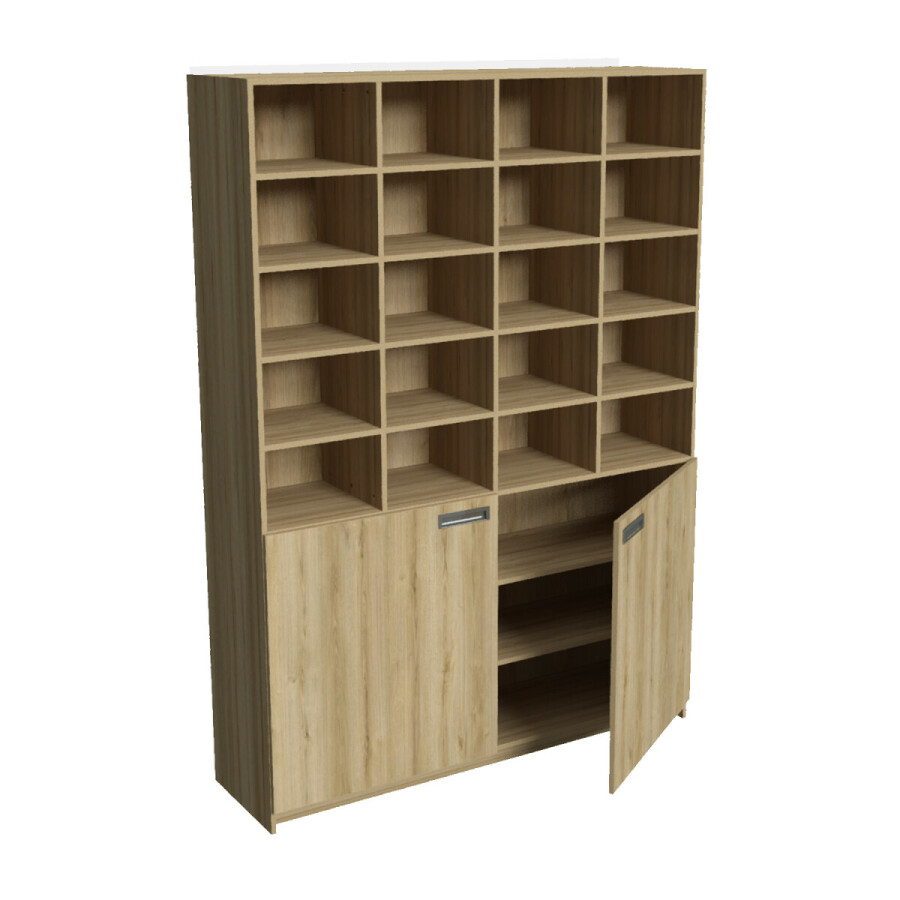 · De bovenkast bestaat uit 20 vakken van afmeting lxh: 35,5 x 22,4 cm. 4 horizontaal / 5 verticaal.